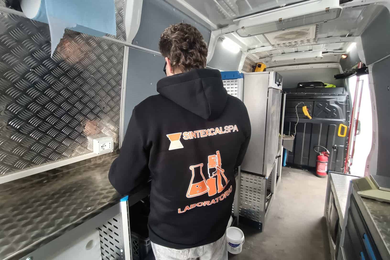 Controlli di qualità da una parte, stimoli all’innovazione dall’altra. Un binomio di skill che prende forza dal lavoro di squadra, nel caso specifico tra laboratori, impianti e cantieri. Scriviamo al plurale perché accanto al laboratorio centrale Sintexcal di Ferrara si muovono sul territorio le unità mobili, un cui esempio di abbiamo visto proprio a Corteolona. Il laboratorio mobile presta assistenza sia agli impianti sia ai cantieri Sintexcal.